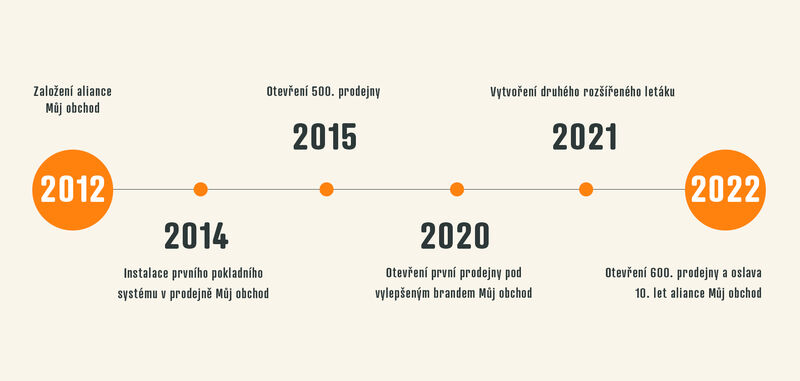 Můj obchod là liên minh tập hợp bởi các nhà bán lẻ trong ngành thực phẩm trên khắp Cộng hòa Séc cùng với hơn 600 cửa hàng đã tham gia.